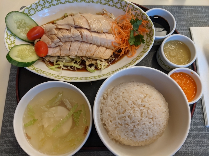 夕飯に食べたMandarin Orchardにあるchatterboxのチキンライス。 だいたい2600円程度。 3種類のソースがついてきた