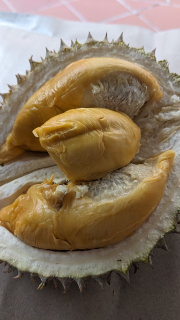 食べ終わると、胃から戻ってくる吐息がねっとりドリアンになる。 胃にもこってりねっとりした感覚がある。